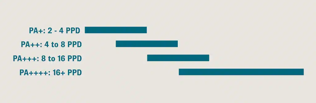 PA står för Protection Grade of UVA, och PA+-märkningen mäter en produkts förmåga att blockera UVA-strålar.